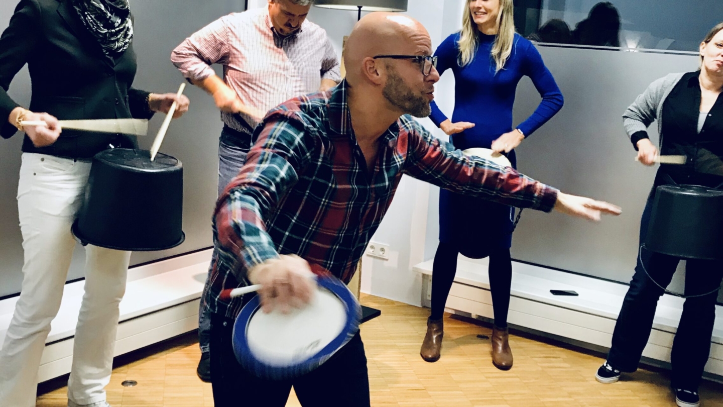 Whether it's team building, a drum circle, or a drumming event, the focus is always on the fun of drumming. Rudi Bauer gets entire groups grooving. Team spirit, motivation, creativity, and much more are fostered from the very beginning through his concept – playfully, dynamically, and interactively – in schools and for companies.